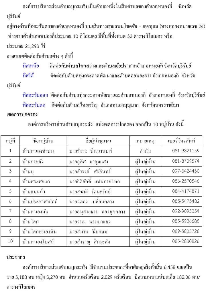 องค์การบริหารส่วนตำบลบุกระสัง อำเภอหนองกี่ จังหวัดบุรีรัมย์ : www.bukrasang.go.th