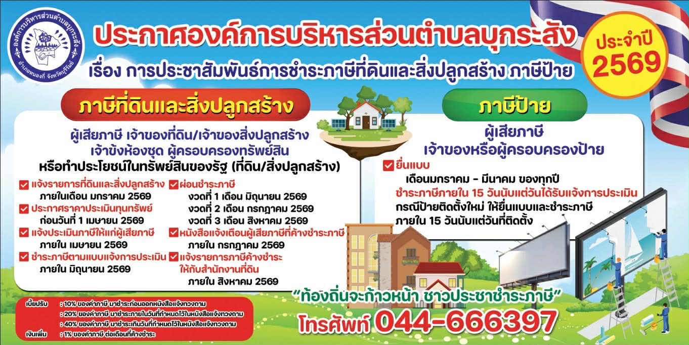 ประชาสัมพันธ์การชำระภาษีที่ดินและสิ่งปลูกสร้าง ภาษีป้ายประจำปี พ.ศ. 2569 |